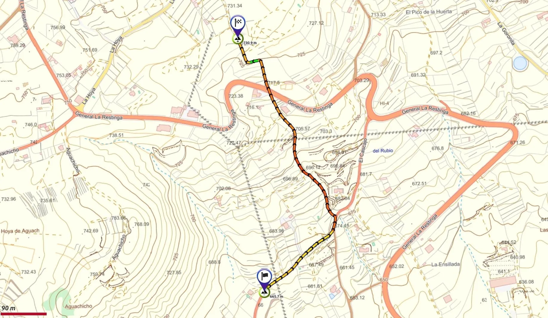 | Altitud máxima | 730 m |