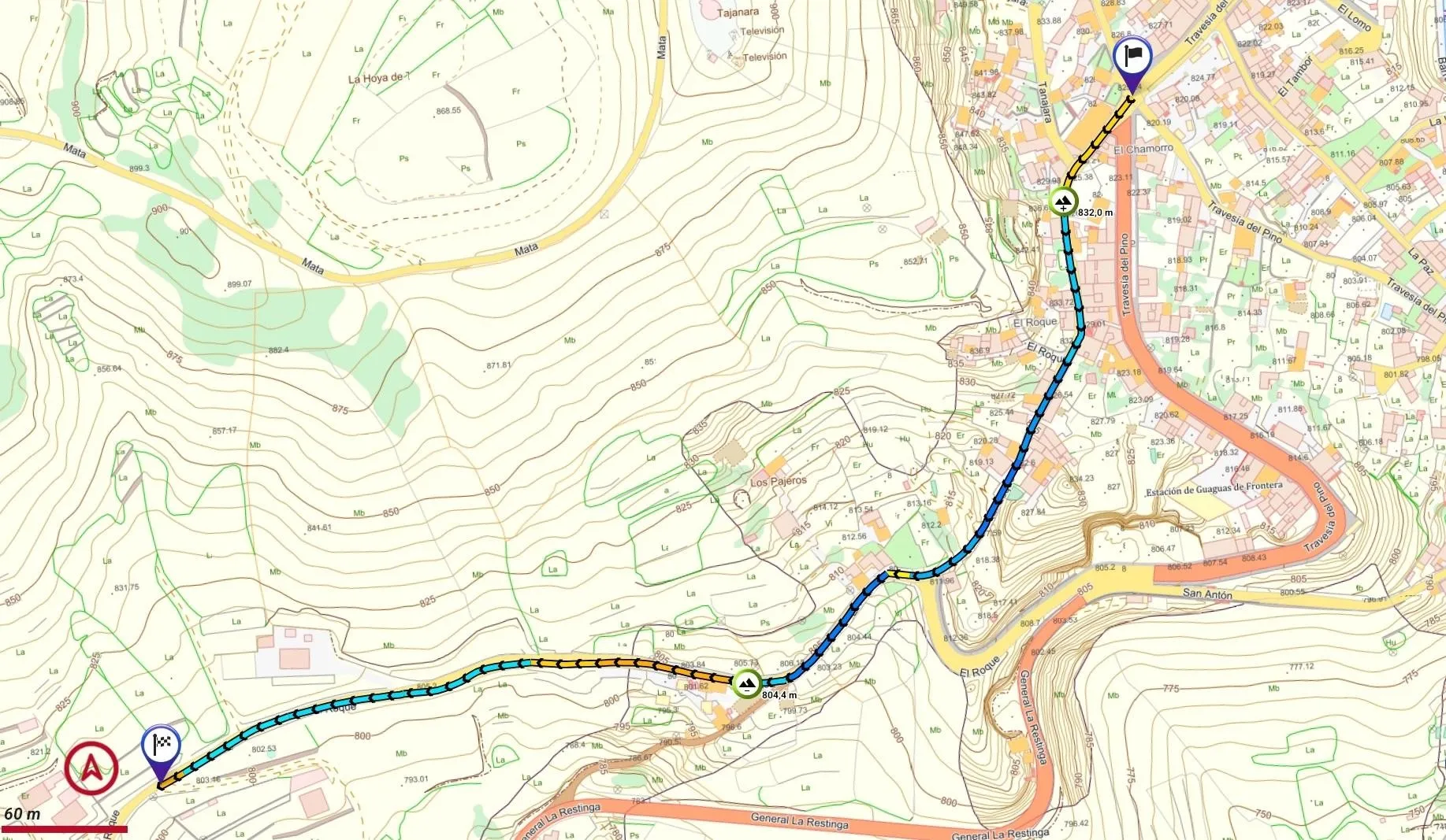 Este tramo del ramal se inicia en El Mentidero (en el caserío de Taibique) que es así llamado porque, en el pasado, existía aquí un alargado banco de piedra en el que los ancianos del pueblo solían reunirse y sentarse a charlar y fanfarronear. Hoy queda, como vestigio de aquel lugar de encuentro, un bar con el mismo nombre. El trayecto continúa por la calle El Roque que recibe tal nombre por un roque que es posible observar a la derecha del camino, a unos 150 m de su inicio, sobresaliendo de la montaña (volcán) de Tanajara y que se trata, en realidad, de una segunda boca de emisión de dicho volcán. Del lado izquierdo se encuentra la montaña del Gurugú, coronada por una cruz de madera. En el habla popular de El Hierro, el término "gurugú" significa reunión de gente y equivale a mentidero.
