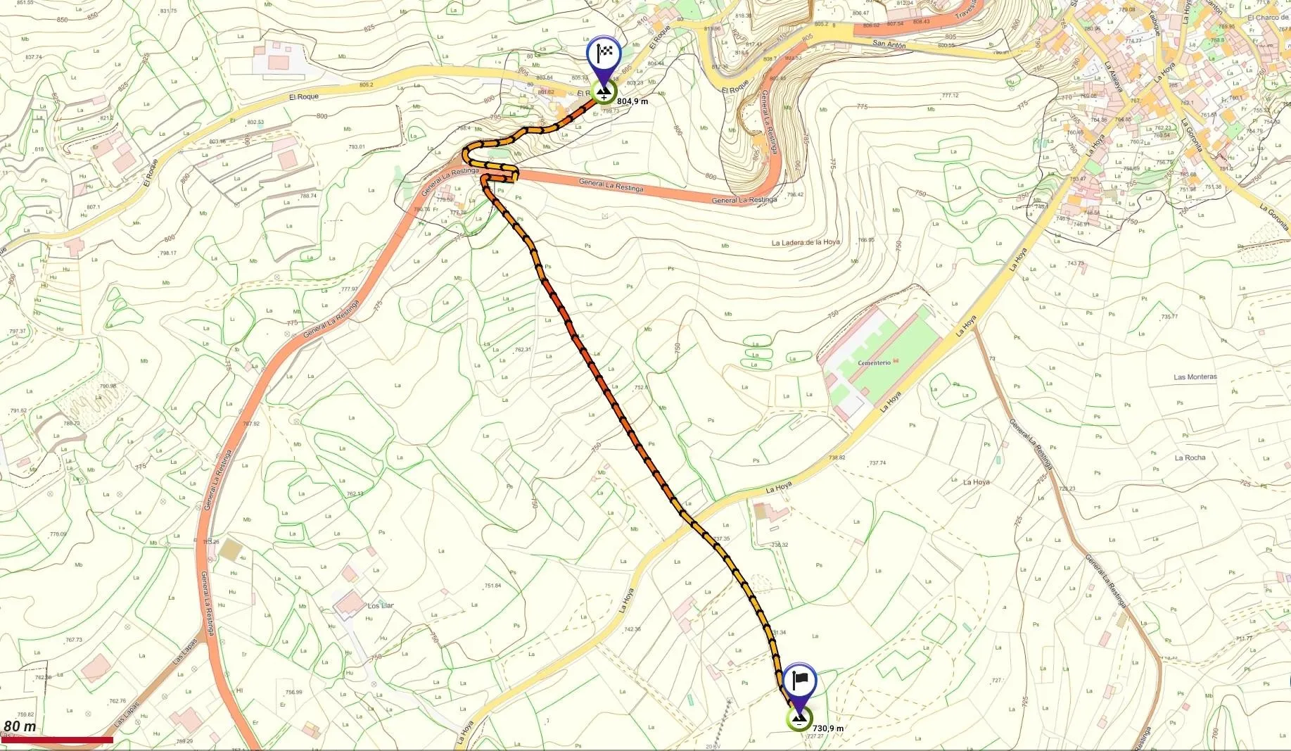 | Altitud máxima | 804 m |
