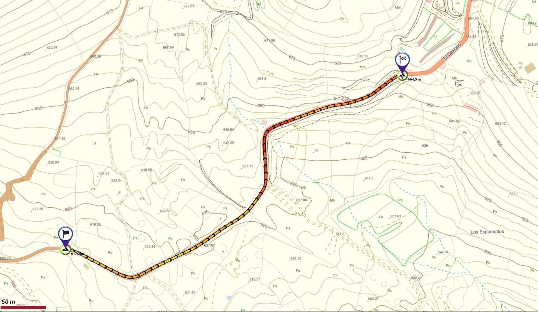 | Altitud máxima | 664 m |
